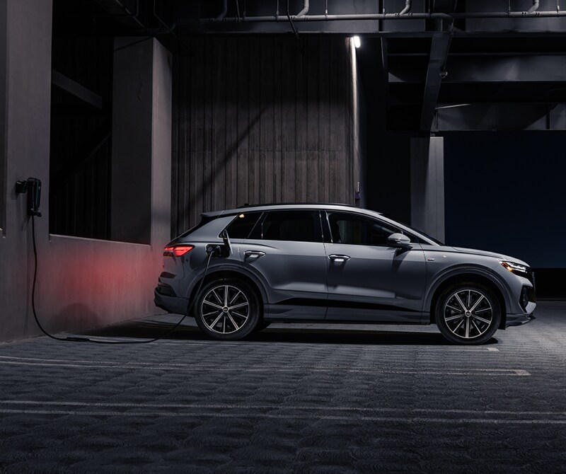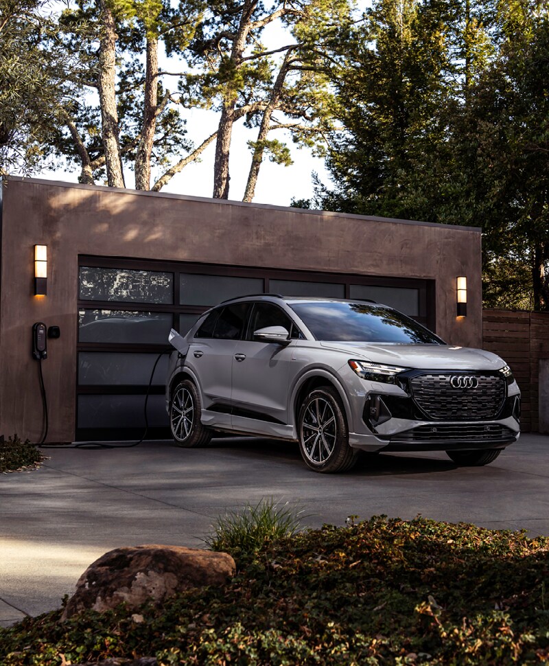 • Compact charging at home Audi e-tron models come standard with the Compact Charging System, which will do the trick in the meantime. Once your Level 2 HomeStation charger is installed, enjoy more charging power, connectivity capability, and longer cable lengths.